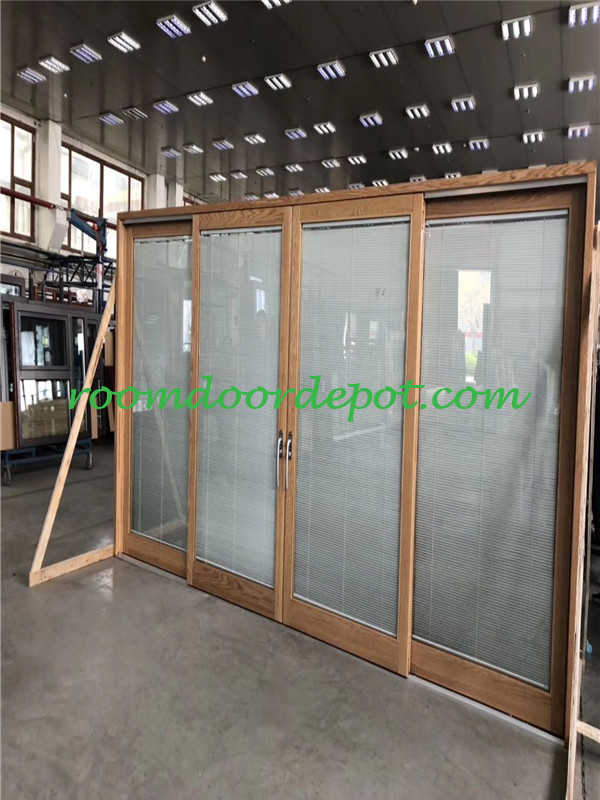 > Wood cladding aluminium french patio doors with grill design